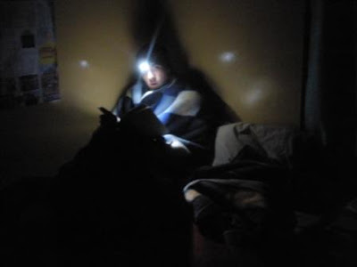 Then the electricity went out. We ran to grab our headlamps from the room, meanwhile marveling at the transformation of our surroundings into total blackness, except for the now exceptionally bright stars. Still, hard to appreciate the beauty of the snow and stars when you are contemplating a night with no heat. Anyway, retrieved the headlamps and resumed cooking dinner on the gas stove, which by this point we were huddling around for warmth as much as anything else. Here’s a short clip—us a little slap happy at being snowed-in in Africa: