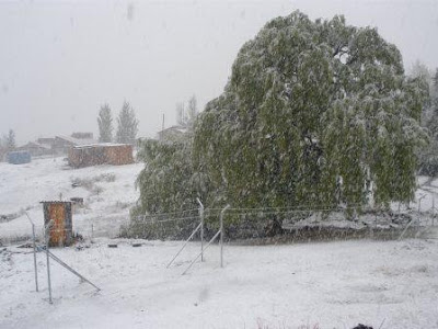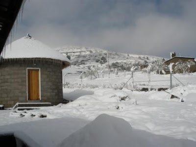 Yep, big snowstorm here on Saturday! We woke up in the morning to a drizzly rain, which suddenly turned into large flakes of snow. Our plans to climb the mountain behind TTL thus put on hold, we confined our movements between the house and the safehome (luckily, they keep the babies pretty warm, and nothing cozier than holding a swaddled baby in front of a gas heater!). Since our room is not so well equipped (i.e., freezing cold) we borrowed a little electric heater from Nthabaleng. At the end of the day we began preparing dinner in the kitchen, looking forward to a cozy night with our heater and maybe a movie on the laptop.