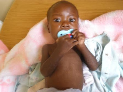 We all trooped in to Thabang’s office, and the m’e unwrapped the bundle. We learned that his name was Tsepang. He was the most frightening thing I have ever seen. His eyes stayed wide open and observant as we gazed down at his skeletal body. I could not (still cannot) comprehend how a seven-month old child could survive such wasting. We didn’t bother taking off all his clothes in the cold room to weigh him. It was too apparent that this was an emergency situation. With all of his clothes, he was 6.4 lbs.
