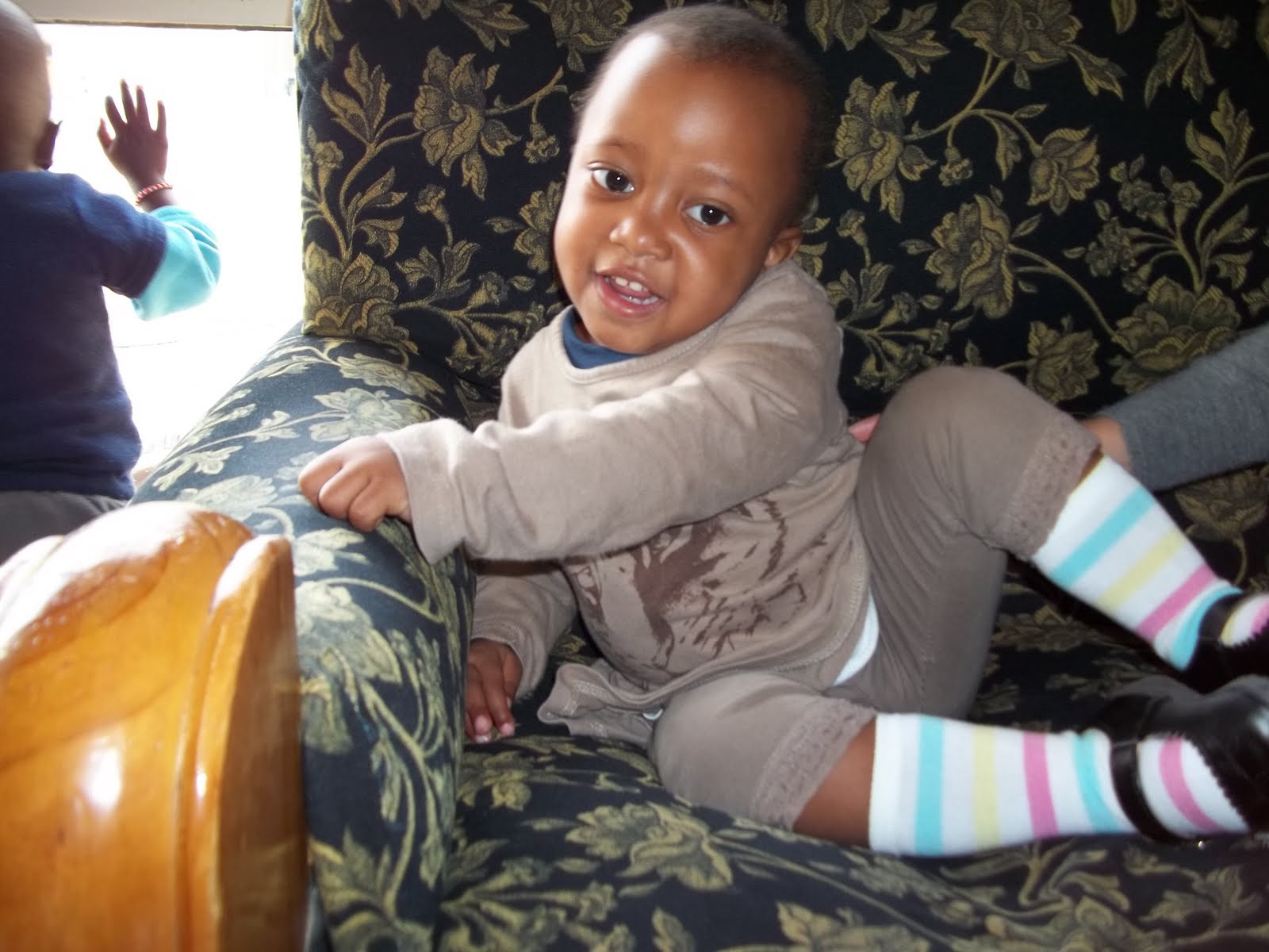 However, while Lerato’s nutrition and health has greatly improved, she is still developmentally delayed. She celebrated her 4th birthday in October but her behaviour has often been hard to distinguish from children in the safehome who are 1-2 years younger. The safehome caregivers have worked hard with her, encouraging her to say words and feed herself, but it’s difficult to assess how much of an impact her HIV status – and long bouts of malnourishment and illness – has had on her development. But Lerato has also always seemed to be very influenced by the other children around her. During her stay at the safehome, when there were older children who were walking and feeding themselves, she was often more motivated to do these things as well.