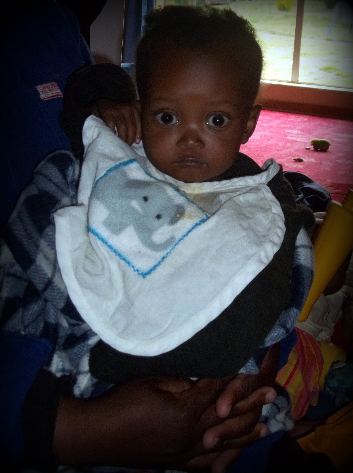 Yesterday’s site visit was different, one new child has been brought to the safe-home. This baby girl looks only a few months old – smaller than even our small safe-home eight month old babies – but her Bukana says she’s 14 months. There’s not a millimeter of baby fat under all those of layers of clothing, this little one weighs only 5.3 kg.